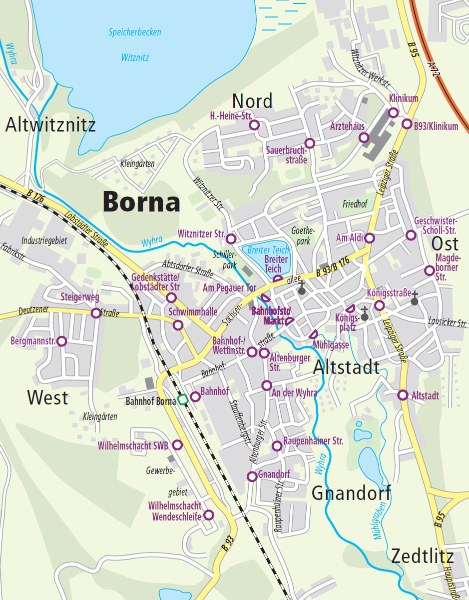Übersichtskarte Stadtverkehr Borna - Tarifzone 521