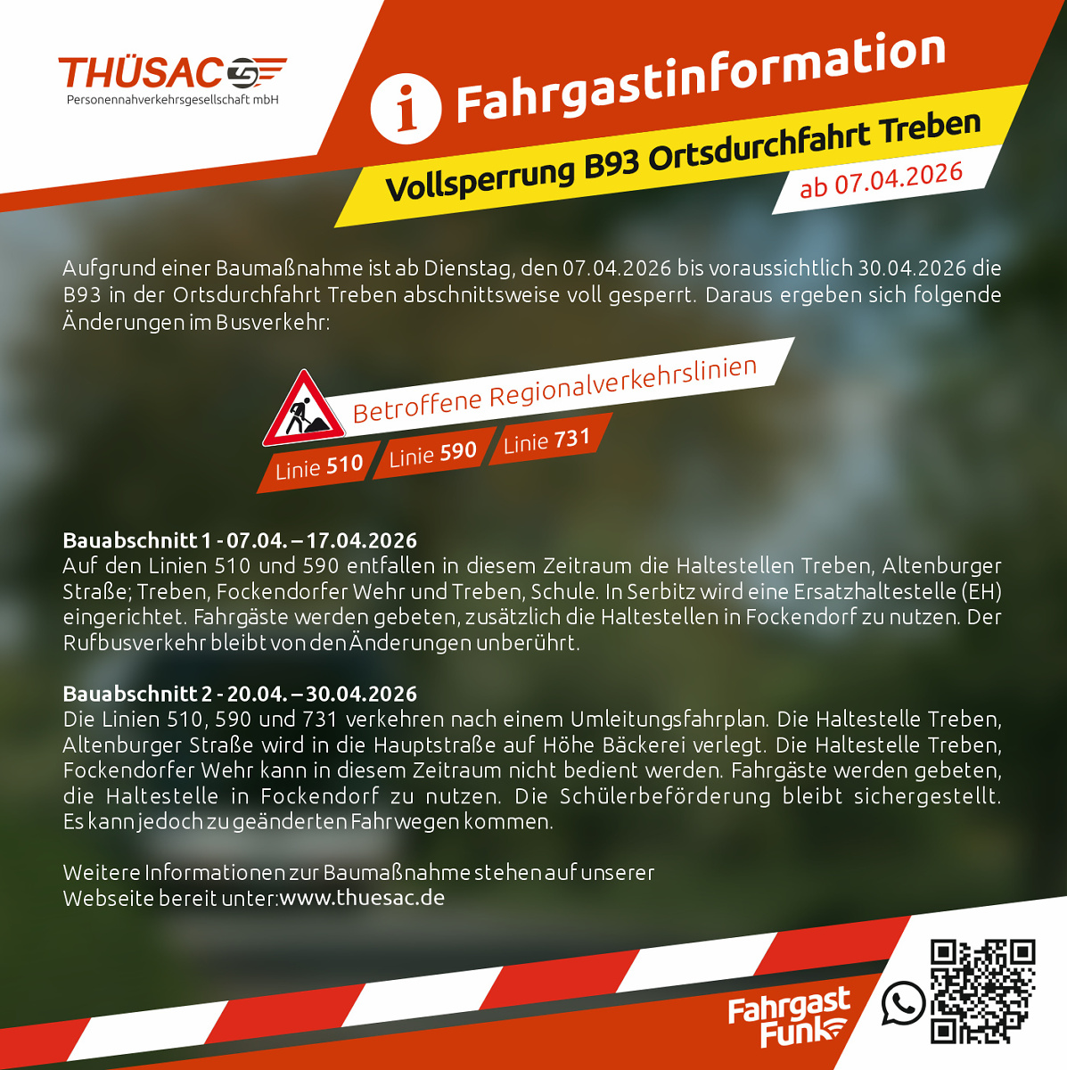 Weitere Infomationen zur Baumaßnahme: THÜSAC FahrgastFunk.