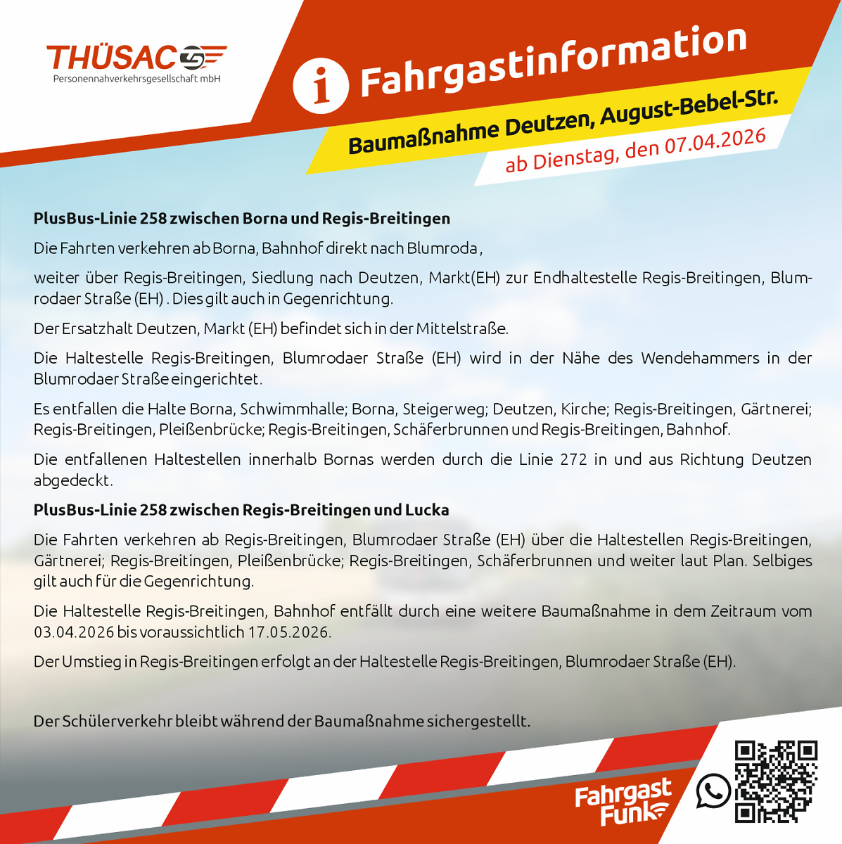 02.04.2026 - Baumaßnahme Deutzen, August-Bebel-Str. ab 07.04.26